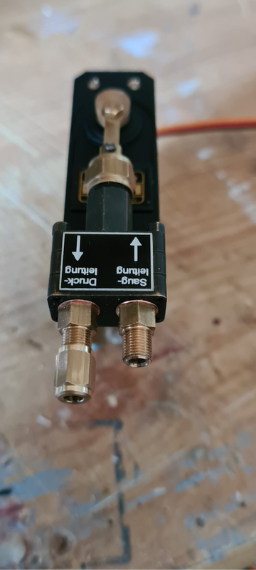 Das Ventil wird mit einem Servo verbunden und somit lässt sich die Gasleitung bei Feuer aus ferngesteuert schließen. Das verhindert wirksam die Wikingerfeuerbestattung.