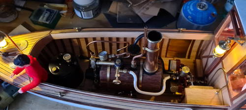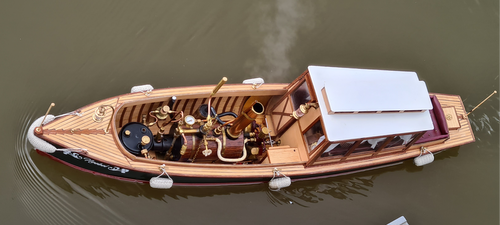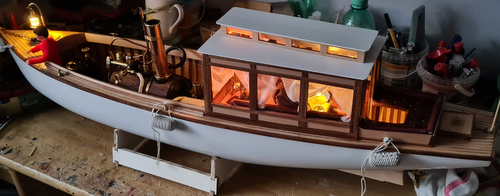 Da ich ja zur Weihnachtszeit 2020 preisgünstig eine Cheddar Pintail mit horizontalem Kessel ergattern konnte, benötigte ich nun das passende Modell. Da die Pintail für Modelle bis ca 95cm Länge gedacht ist und einen 55mm 4-Blatt Messingpropeller dreht, ist die Alexandra das ideale Modell. Eigentlich sollte hier ein vertikaler Kessel verbaut werden, aber der horizontale Kessel senkt den Schwerpunkt und bei 19cm Breite könnte es eventuell kippelig werden. Außerdem gefiel es mir so auch besser.
