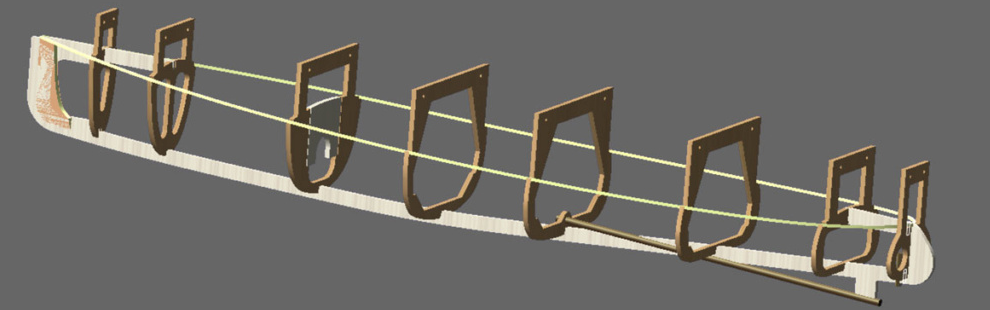 Die Spanten und der Kiel sind ausgesägt. Teile der Stringer auch.
